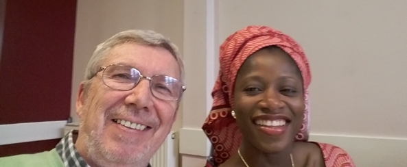 "the lady included with himself (Robin Russell) is Clementine, one of the African singers at the Mass." |